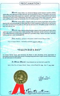 因此,现在,作为库布斯.克雷斯蒂市市长,我现在宣布2000年8月5日为德克萨斯州库布斯.克雷斯蒂市“法轮大法日”,并鼓励所有人珍惜这个机会,参加正在库布斯.克雷斯蒂中心图书馆举办的免费法轮大法传授班以使更多的人获益。
