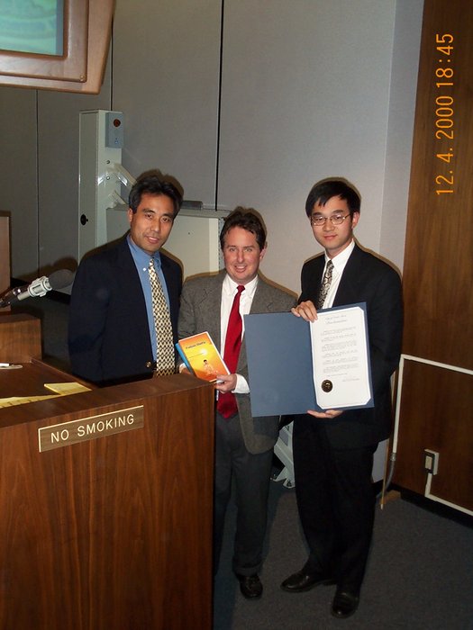 位于加州南部的寇斯特麦瑟市(COSTA MESA)市宣布2000年12月4日至8日为该市“法轮大法周”。在12月4日举行的市议会会议上举行了简短的仪式,市长盖利·穆南汗(GARY MONAHAN)先生亲自向到会的学员颁发了公告书。学员致了简短的答谢辞,并赠送了大法书籍和录像带。