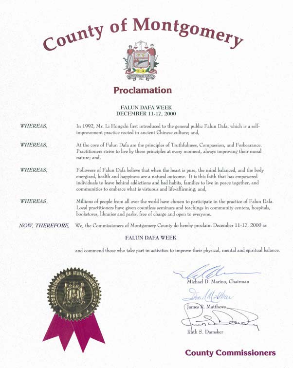 宾夕法尼亚州蒙特马力市宣布法轮大法周