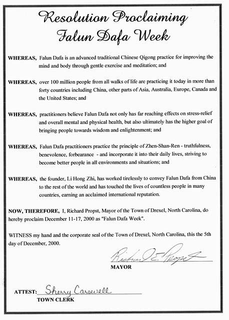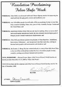 北卡州爵科索镇宣布“法轮大法周”