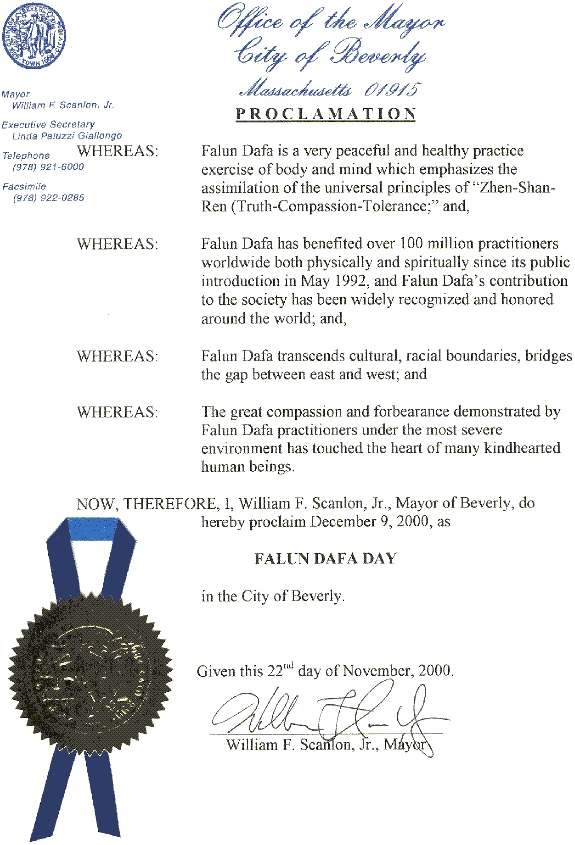 鉴于: 法轮大法超越文化种族界限,填补东西方隔阂,传播宇宙真理于世界;