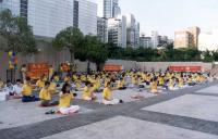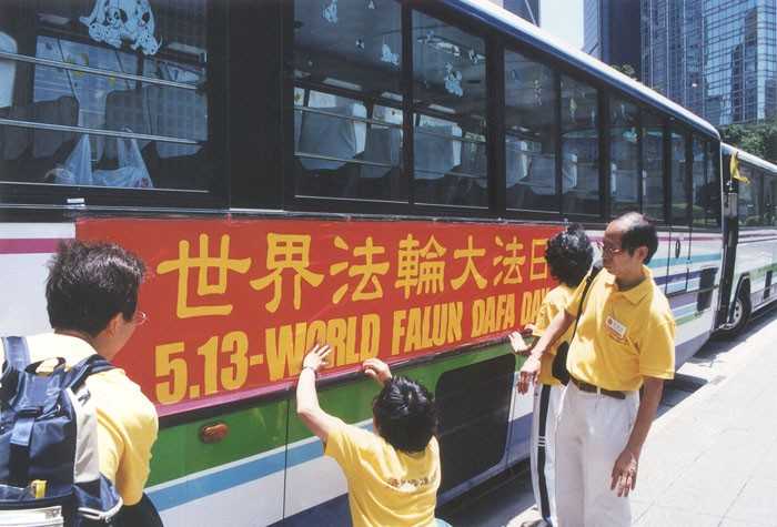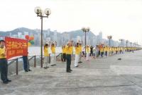 整天的活动都在节日气氛中进行,和民众打成一片,以便更多的善良人士能进一步了解法轮大法。早上遮打花园外交通频繁,写上“世界法轮大法日”、“真善忍”、“法轮大法”大字的横幅又打到街上,来往的车上乘客和路人的目光都被吸引到花园内的炼功队伍那里。下午举行集体炼功的海滨公园长廊是游人众多的地方,浏览的中西游客不少都驻足观看、拍照或索取介绍大法的图册和资料。从海滨公园经文化中心游行前往九龙公园的一段路行人熙来攘往,整齐的游行队伍给他们留下深刻的印象。香港学员希望通过这一系列活动,令更多人了解法轮功是导人向善、有益身心的修炼大法,既为大法的普世弘扬付出力量,也在这神州一隅,给中国大陆受到不公正对待的广大修炼者献上精神上的支持。
