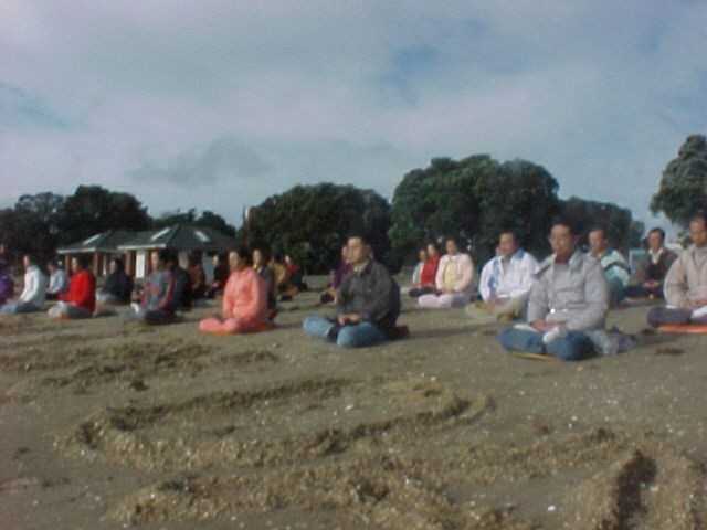 之后,我们来到了游人较多的 Misson Bay海滨,行一整天的弘法炼功。本来天气预告当天有雨,但只是在上午打坐时下了一阵雨,然后多云转晴。天象有知,为我们弘法炼功提供了有力的条件。