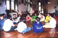 学员们日夜赶制的一年回顾录象片中,出现了师父讲法和打大手印的场面时,全场掌声雷 动。热泪从学员们眼中夺眶而出。一位年轻的女学员感动地对旁边的人说:“这是一段什么样的历史啊,我们可都在其中啊!”