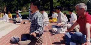 俄亥俄州哥伦布市的大法弟子5月13日在靠近市中心的Goodale公园以心得交流练功和向游人弘法的形式庆祝法轮大法日。一名代顿市刚得法不久的西方学员也特地赶来参加。