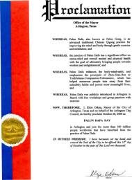 美国德州阿灵灵顿市宣布2000年10月28日为法轮大法日