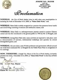 我约瑟福.威斯,坡斯安波益市市长,特此宣布2000年12月4-10日为坡斯安波益市法轮大法周。