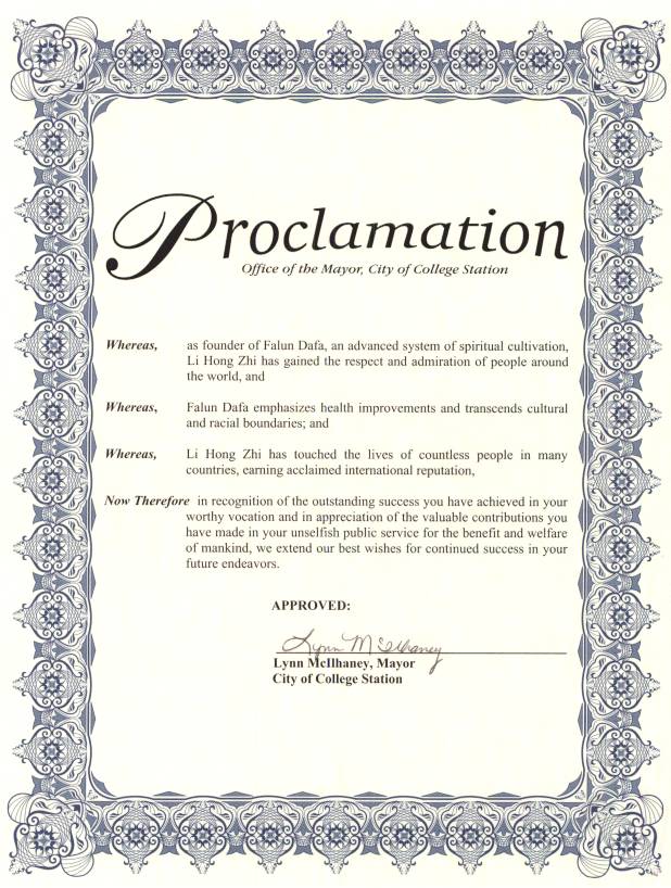 鉴于 法轮大法的创始人李洪志先生,创立了一种高层次的精神修炼系统,并获得了世界人民的赞誉和尊敬;