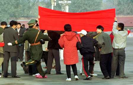 在上述8分钟的时间里,悠扬、祥和的“法轮桩法”炼功音乐一直在天安门广场回响。据悉,警车在冲向炼功学员的途中撞伤一位女游客。有两个在现场拍照的西方记者被警察拦截。
