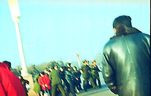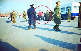 整个过程从法轮功学员开始炼功到全部被强行带走共持续一分多钟。下面几幅照片为警察强行抓走法轮功学员的照片。之后在广场上又有五、六名法轮功学员集体炼功被强行带走。(1999年12月5日稿)