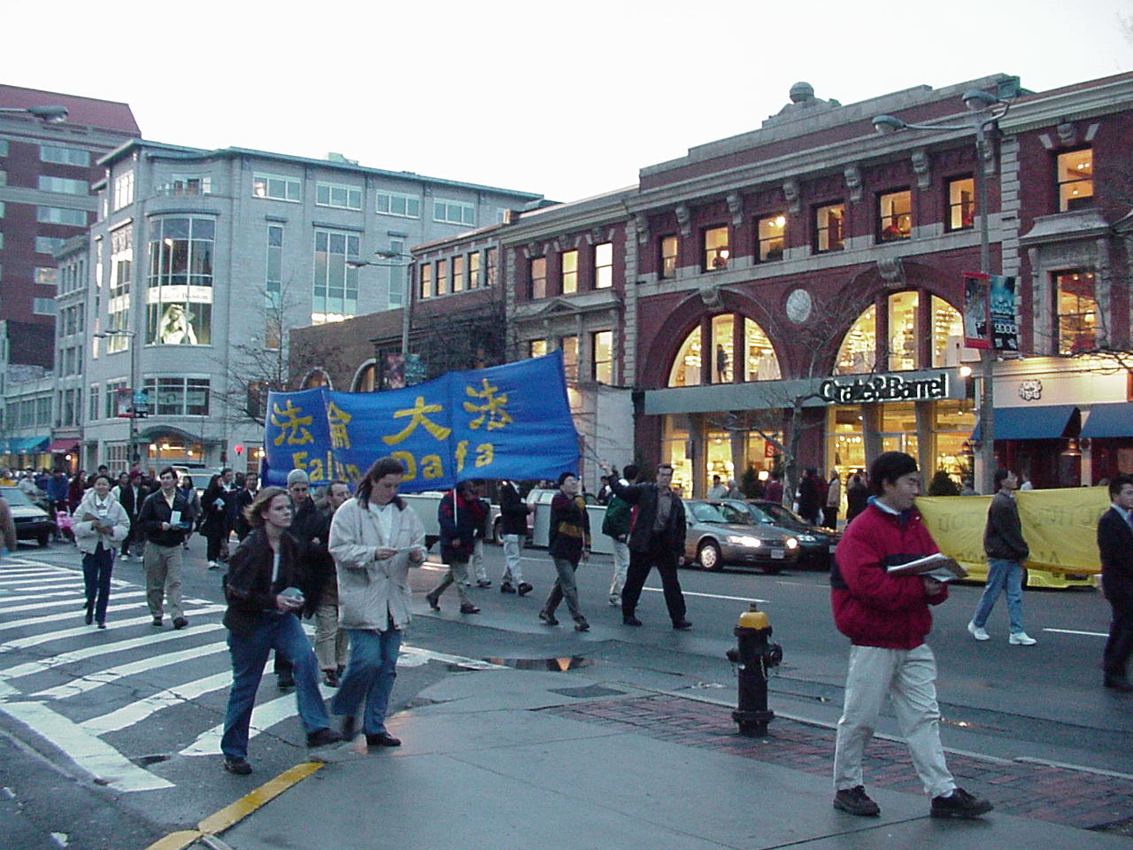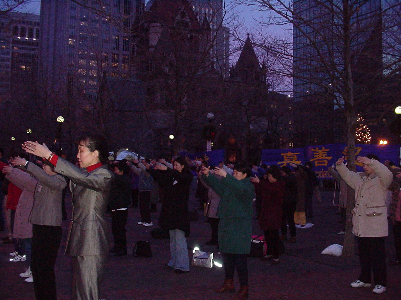 【明慧网2000年1月5日】为期两天的波士顿2000年法轮大法法会于元月1日如期召开并圆满结束。以美东地区为主的东西方学员大约500人到会。下图为法会交流心得及集体炼功(1月1日)、弘法步行(1月2日)的场面。