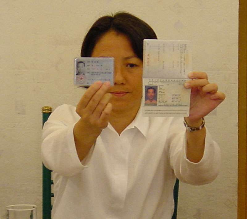 | 举行“状告江泽民”新闻发布会 | 展示被拘学员朱柯明的证件 | 朱柯明的特区护照 |