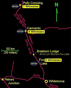 马丁·杰克斯的关于目击者居住地的更详尽材料:“福克斯湖有6个目击者,卡麦克村有9个目击者。卡麦克北面是佩里渡口村,那就是丹·储德住的地方,共有8个目击者。然后在更北面的马约村还有8个目击者。所有的都是同一个晚上,共覆盖了大约250英里的地域”