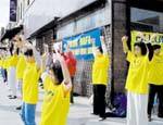 昨天,在大多学员集体炼功的同时,部分学员则分散在国会山庄、百沃德露天市场、唐人街等处散发有关法轮功的材料。