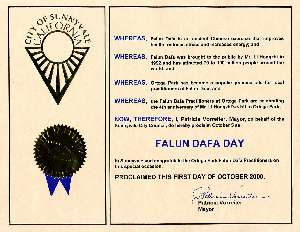 加州太阳谷市市长颁“法轮大法日"声明
