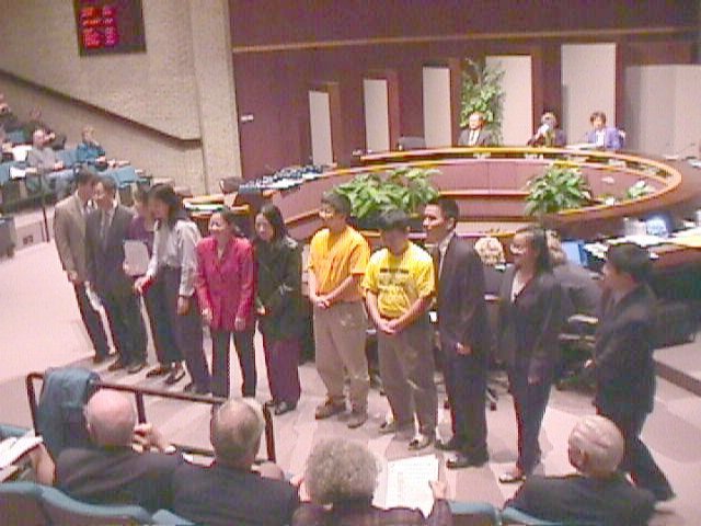 我谨代表本地以及世界上千千万万的法轮大法学员对尊敬的市长先生和市政府的官员命名二零零零年十一月十八日为普拉诺市的法轮大法日表示感谢。这个褒奖对于鼓励更多的人了解什么是法轮大法以及更重要的是受益于法轮大法将会具有深远的影响。