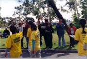 10日中午,美国学员凯文打电话来告诉我们这个游行的事。他也是刚听说就立即打电话去找主办单位─郡政府联系。主办单位一口答应了。因为时间已经很晚,大家立即分头通知。因为这个游行规模很大,我们马上和洛杉矶学员联系希望他们来些学员。