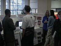 在会议登记台正前方,摆满了各种揭露江泽民等人残害法轮功学员的邪恶暴力行为的图片资料和介绍法轮功及中国法轮功学员的真实情况的资料。电视上不时地播放师父的教功录像片,法轮功真实故事(一、二)。平静祥和的炼功场面和天安门广场警察的暴行形成鲜明的对比。与会代表没有一个不谴责中国政府少数领导人无理制造的这些暴行,带走了许多资料以便回去向自己当地的人介绍。在会议结束前,一位来自德州的人权方面的大学教授又特地过来看看自己是否拿全所有的资料,并留下名片保持联系。
