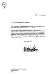 【明慧网2000年11月23日】11月22日丹麦外长第三次给法轮功学员的回信,表示丹麦政府将继续要求中国政府停止镇压法轮功。回信全文如下: