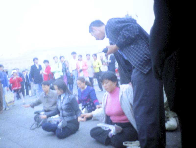 2000年10月2日上午天安门广场镇定自若的炼功人