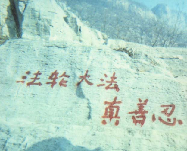 紧接着,他们又到师父曾经去过的响堂山,在那里他们喷了两个“法轮大法真善忍”“法轮常转,佛法无边”,图(响堂山)就是在响堂山的崖壁上喷完后的留念照片。