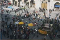 为了揭露其恶行,呼唤正义的人们共同制止其暴行,部份德国和奥地利大法弟子于十月和十一月两次在慕尼黑市中心的市政厅广场前炼功弘法和向世人讲清真象。