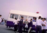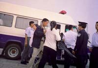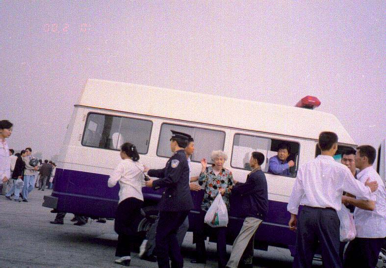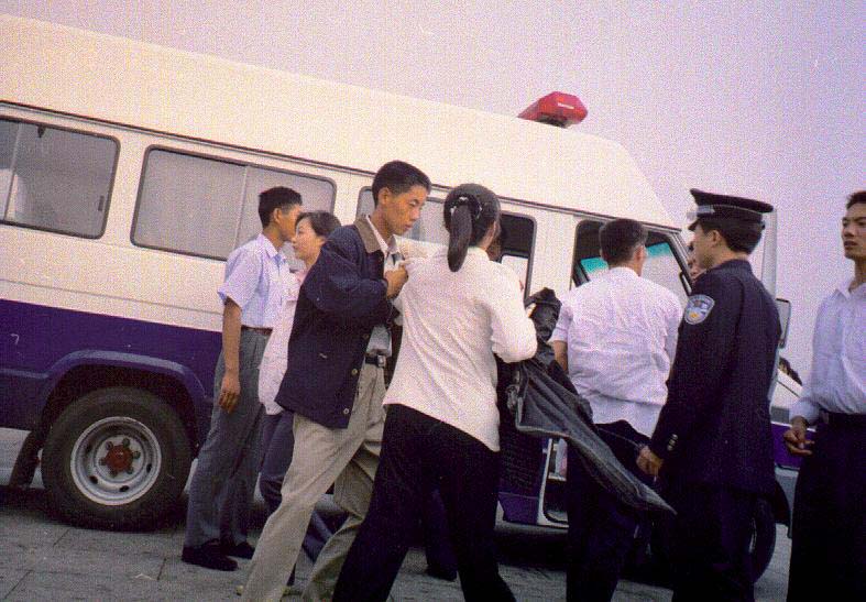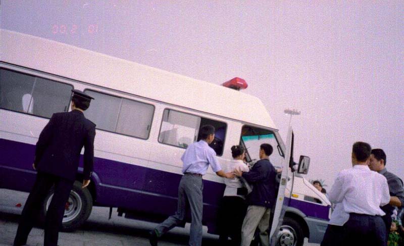 注:照片中抓人的场面是10.2日拍的,三名学员打横幅照片是"十一"期间的,但具体日期不详。