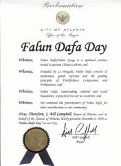 现在,作为亚特兰大的市长,我,比尔坎布尔,代表亚特兰大所有公民,特此宣告二零零零年十二月八日为亚特兰大市的法轮大法日