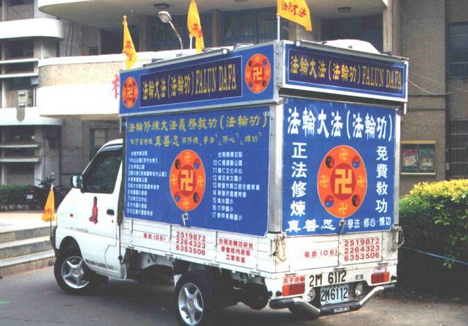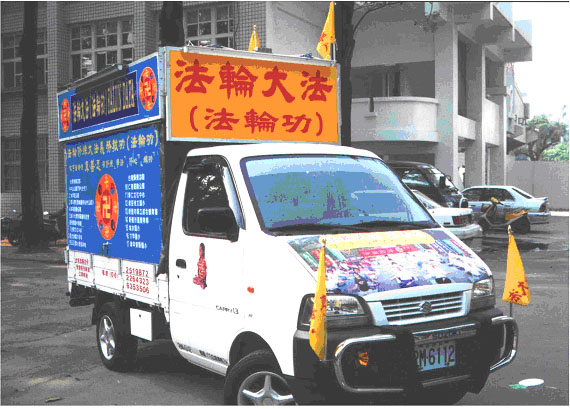 | 将走遍台南县市各角落的洪法车 | 将走遍台南县市各角落的洪法车 | 永康市菜头节洪法炼功情形 |