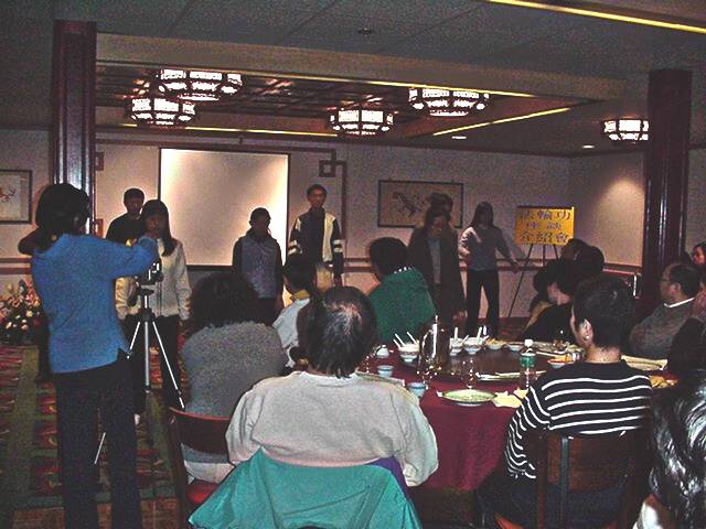 介绍会在平和轻松的氛围中开始。主持人首先播放了“法轮大法在台湾”及“法轮功真相”。之后,法轮功学员演示了五套功法。就餐期间,学员和来宾愉快交谈,气氛融洽、热烈。五位学员相继向大家讲述了修炼法轮大法的亲身体验。一位来自某公司的高级技术主管真诚而幽默地介绍了他是如何走进修炼,以及相继而来奇迹般的身心变化;刚到美国不久的一名大陆姑娘,以她进京上访被关押的经历让听众对江泽民政府践踏人权有了更直接的认识;现在哈佛医学院的一位访问学者讲他94年得知大法但没有在意,直到身心憔悴、患上绝症、没有办法时,是大法使他重新成为身心健康、知道人生意义的人。最后他语重心长的告诉大家,百闻不如一见,一见不如体验。