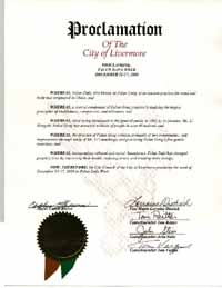美国加利福尼亚州立物茂市宣布2000年12月11日至17日为立物茂市法轮大法周。公告译文如下: