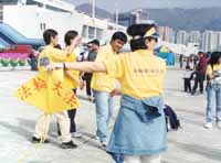 一直以来香港的洪法工作主要是集体炼功,在公众地方向本地市民、国内外游客派发大法资料,或采取比较间接方式,如投递住户信箱、传递大法资料等,这些方式固然能让市民接触大法及了解真相,但市民对法轮功学员本身的认识还是很少,我们到底是一群什麽样的人?其实,我们可以采用更多样化的方式,譬如参加政府举办的康乐活动不仅可以让更多人知道大法,还可以缩短市民与大法弟子之间的距离。在与大法学员有直接的接触下,我们善心的言行或许能化解市民对大法和大法学员的误解,引发他们对大法的正面认识。