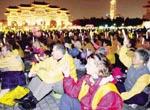 台湾法轮功研究学会廿三日晚与来自各国的法轮功成员共约四千人,静坐中正纪念堂寒风中,手持萤光棒,悼念在大陆殉难的一百零三名学员,廿四日还要举行大游行,呼吁大陆停止