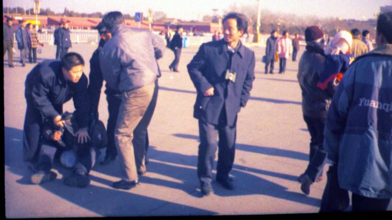 2000年10月2日上午天安门广场镇定自若的炼功人