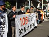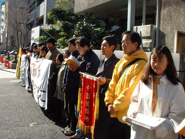 【明慧网2000年12月30日】 去年今日,北京法庭“审判”原法轮功研究总会负责人李昌、王治文、纪烈武,并最重判刑达18年。今年的同一天日本东京大法弟子20多人来到中国使馆前请愿,举着大幅“江泽民停止镇压法轮功”“106人被致死”“遭受无名苦难,呼唤正义良知”等条幅,同时分发中日英文大法报纸,向世人。东京很多大法弟子已经前往台湾参加本次亚太地区法会,留下来的同修们克服各种困难,从学校、单位,从各处聚齐来,有的夫妻带着幼儿,有的刚从台湾法会回来就又赶来,大家都觉得时间紧迫,要抓紧每一次机会讲清真相,救度世人。