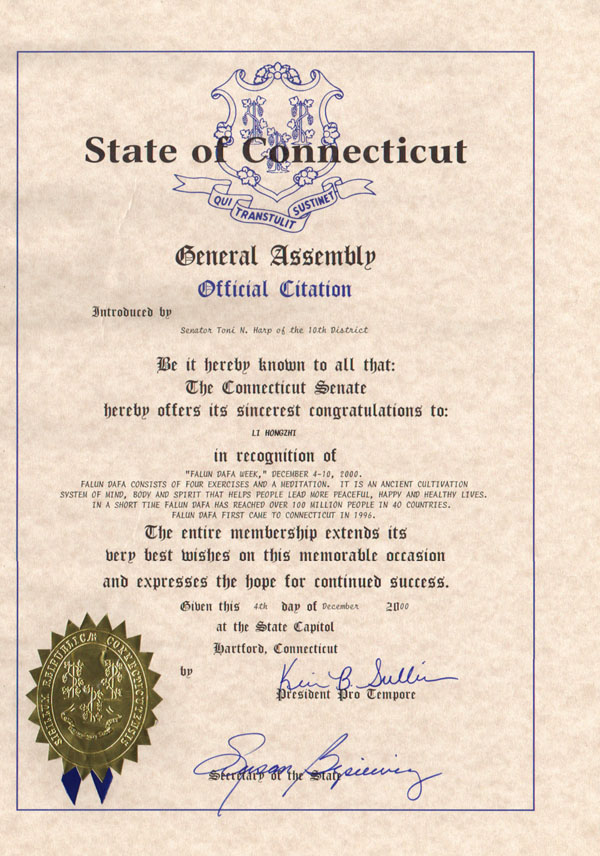 康涅狄格州第10选区参议员宣布法轮大法周 【明慧网】