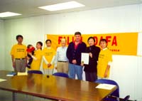 【明慧网2000年12月4日】 欧马哈市大法学员和市议员Mr. Robert Sivick合影