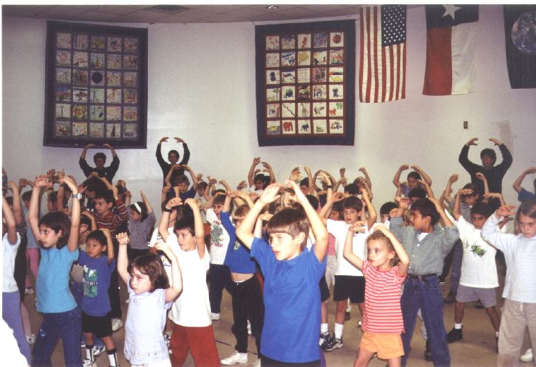 经学校的老师和当地的大法弟子多次商议安排,于2月23日下午在 Post Oak 学校礼堂内举办了法轮大法介绍会。全校从学前班到八年级共二百多人,年龄从四岁半到十三岁,分成五组,分别由包括美国学员在内的五名法轮大法修炼者介绍、展示、教授法轮大法的功法。孩子们天真无邪,不少孩子学得十分认真,特别是第二套功法和第五套功法,动作简明、优美,孩子们十分喜爱。大法弟子还告诉他们法轮大法修炼真、善、忍,要求做一个好人。有的孩子还提出一些问题,都一一得到解答,有的孩子举手发言时说:“我喜爱法轮功”,在这些幼小的心灵里,或许已经埋下了将来得法、修炼的种子。
