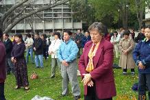 学员在柏克莱大学校园进行了两次集体炼功,集体炼功的场面吸引了众多的友人和学生,包括碰巧路过的新闻摄制人员。与民众交谈中我们感到很多人已经非常熟悉“法轮功”的名字,他们对进一步了解“法轮功”都表示了很大的兴趣,我们分发了许多大法介绍单。包括《世界日报》在内的一些华人媒体正面报导了这一次法会。