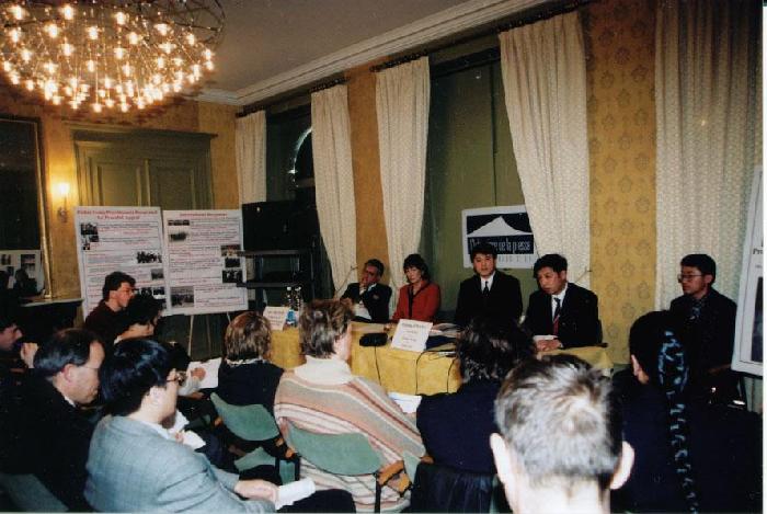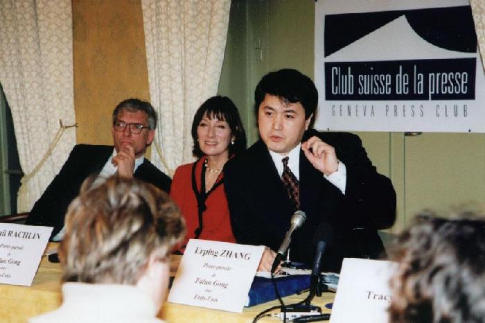 图片资料:法轮功学员在日内瓦法轮功记者招待会 【明慧网】