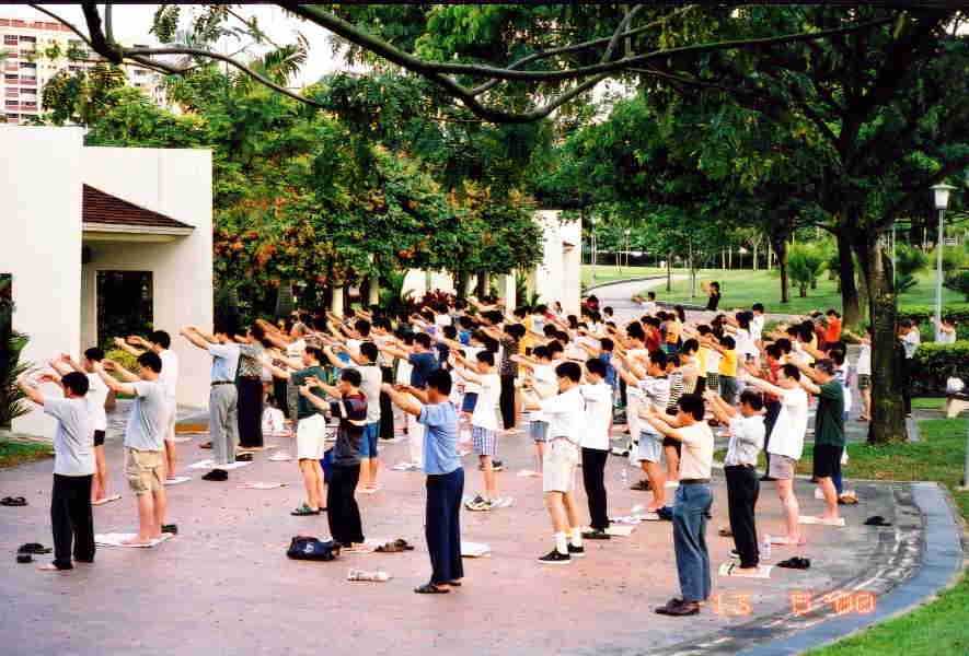 上午9点至下午3点,开始集体学法,集体朗读老师的经文及《法轮佛法(在新加坡法会上讲法)》。3点至4点,部分学员示范和纠正了大家在集体炼功中普遍出现的不标准动作。