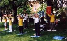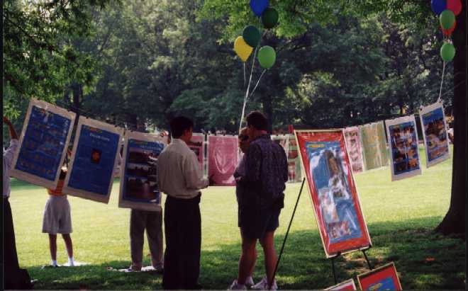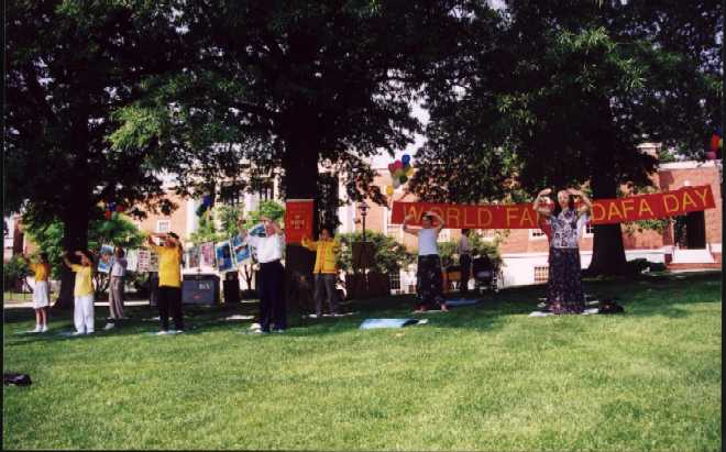 【明慧网2000年5月18日】 今年五月十三日,美国马里兰州巴尔的摩和哥伦比亚两地区的部分法轮大法学员欢聚在著名的约翰.霍普金斯大学,共同庆祝首届“世界法轮大法日”,纪念师父传法八周年,恩泽天宇,使亿万众生修心向善,法正乾坤。