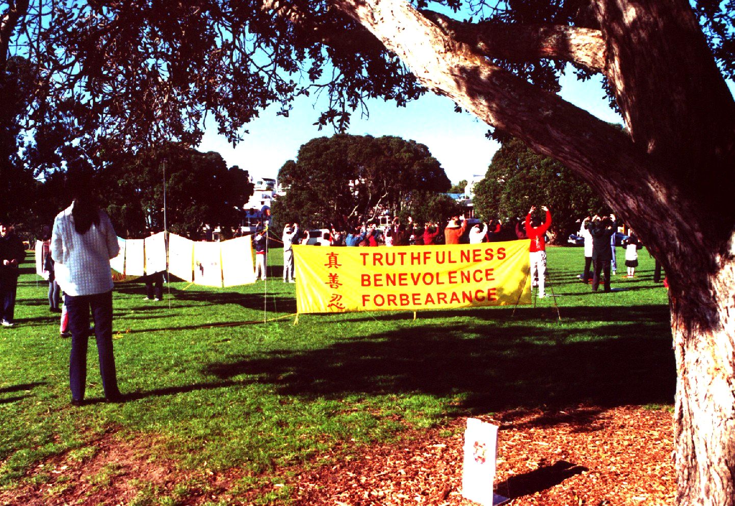 我们共40多位学员参加了这次弘法活动。当地居民看了我们炼功后,一些人表示要尽快到我们的炼功点学功;许多人对我们大法弟子在中国受到的迫害、不公给予极大的同情,他们表示:这么平和的功法,这些普通的百姓遭到如此待遇,实在不公。有的直言:你们在新西兰好好地炼,新西兰政府是不会象中国政府那样对待你们的。还有一些人询问在布道湾是否有炼功点?我们是否每周都在这弘法炼功?