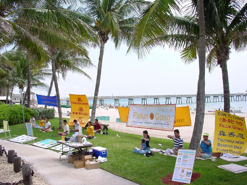 在打坐时,睁开眼睛,正好看到一位开车的游人,把车停在路中央,伸出手来向我们的学员要资料,学员跑上去送上大法的简介及在中国发生的真象资料,紧接着又有人停车索取资料,这也许是很平常的举动,却因此使他们结下了与大法的缘份,说不一定在不远的将来他们就会体悟到这一瞬间的深远意义。