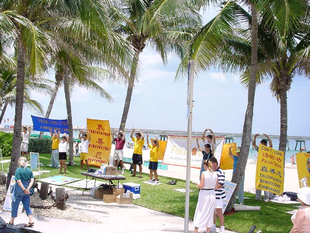 参加活动的几位白人学员,有的是从很远的地方赶来,而他们的洪法热情又与以往不同,有的手拿传单向每一位路过的游人宣传,有的更走向远处的人群中发送介绍法轮大法真象的资料,以至于有时当我们向有些游人递上传单时,他们笑着说已经有了。在炼功的间隙,我们共同讨论起有关洪法的事,白人学员更是给了非常中肯的意见,有时详尽到模拟如何在电话上与人交谈洪法。