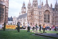 在中国政府镇压法轮功一周年之际,英国学员在伦敦举行为时三天的洪法活动。7月20日在国会大厦(大本钟)前,21日在中国大使对面,22日在中国城。利用这一时机向公众介绍法轮功真象,向有缘人洪传大法,同时揭露中国政府镇压和迫害法轮功学员的种种残暴罪行- 让天下人(包括中国政府官员)了解真象。