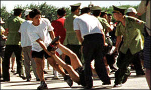 【北京】警察雇佣大批地痞流氓充当便衣在天安门广场抓大法弟子已不是新鲜事了,可是今年的7.20天安门广场上却上演了一出笑话,警察在广场上抓大法弟子却抓了一车便衣。被抓的便衣在警车上叫:我是便衣。警察说:什么便衣,给我下车抱头蹲着。便衣很委屈:我是便衣。警察大叫:老实点,什么便衣。到派出所给便衣们“验明正身”时,才发现原来这一车被抓的“便衣”真是便衣。