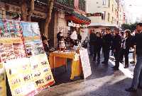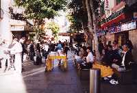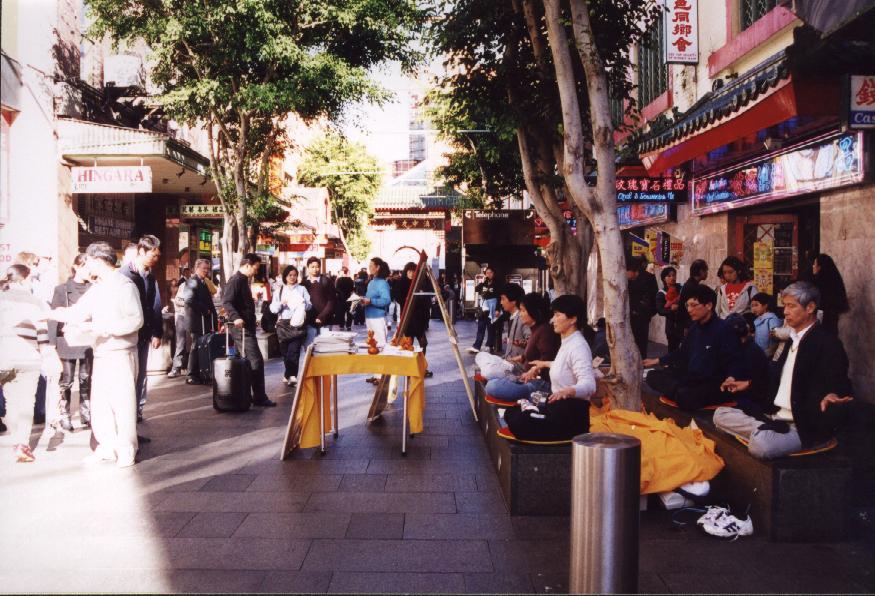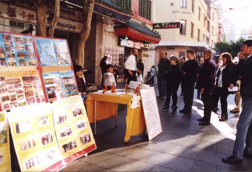 | 图四:商业中心的信息服务台 | 图五:中国城炼功弘法 | 图六:中国城炼功弘法 |