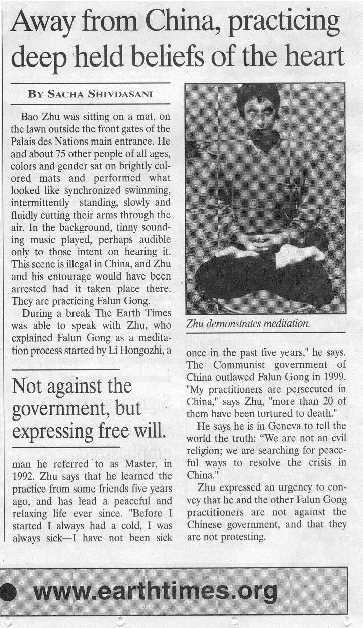 Earthtimes:远离中国,实践心灵深处的坚实信仰(译文) 【明慧网】