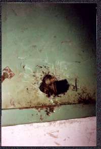后来,我去要人并要钥匙,看见两名妇女被吊铐在车棚里,他们不让我见我爱人,指导员给了我钥匙,说:“你们愿上哪告就上哪告,我们有手续。”(但直到如今我也没有见到任何法律手续)。最后只让孩子见了一面,才知我爱人一直被铐着,当时她拒绝配合这种违法犯罪的猖狂行为,只好绝食绝水,以引起有关人士的关注,直到目前她还在绝食。